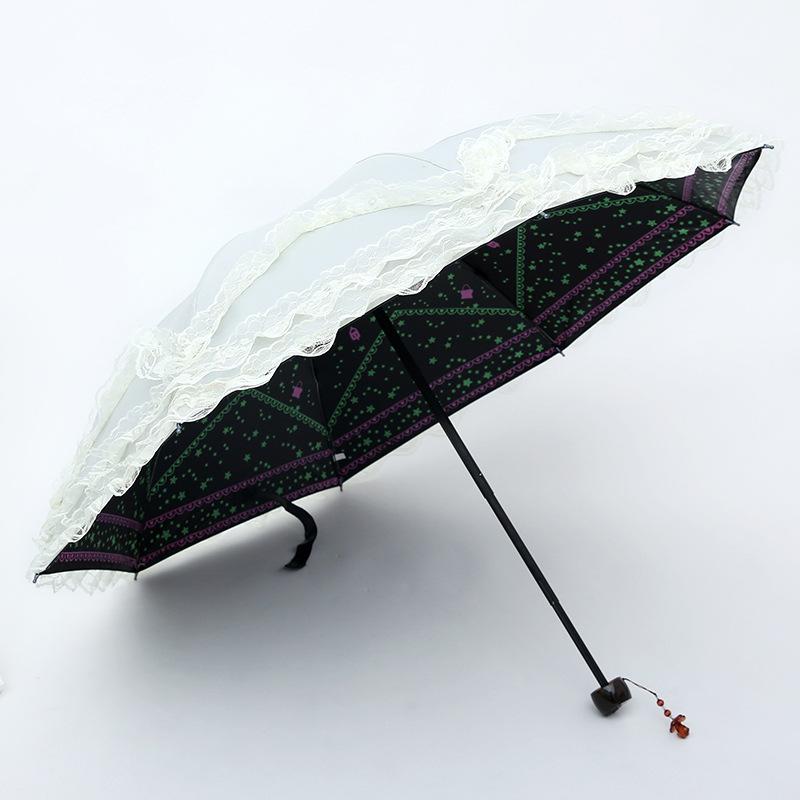 umbrella with sun protection and sunshade, three fold student women's dual-purpose sun lace umbrella rain and sunshine