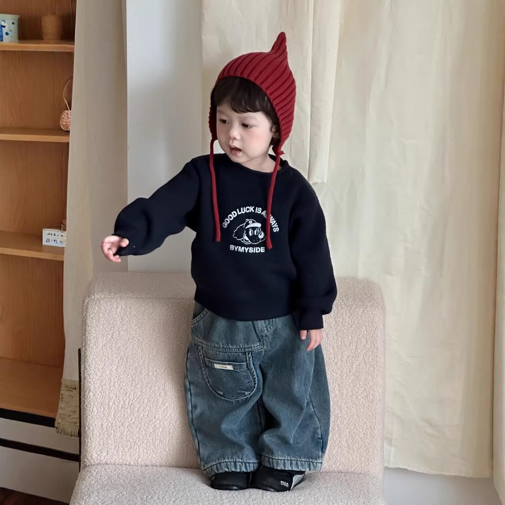 Children's autumn and winter clothing winter new children's clothing baby thickened sweater boys jeans set