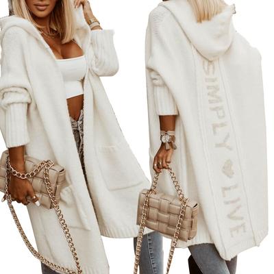 Podzimní a zimní nový volný pletený svetřík střední délky s kapucí