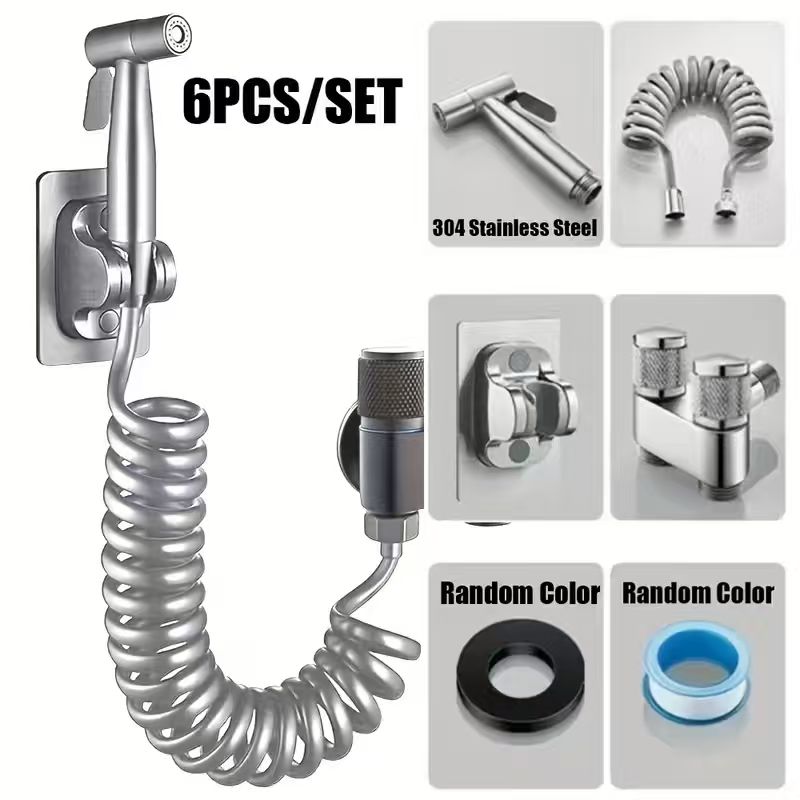6pcs High-Pressure Toilet Spray Gun Set - 304 Stainless Steel Wall-Mounted Toilet Spray Gun, Suitable for Toilets, Sinks,