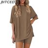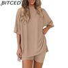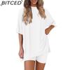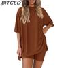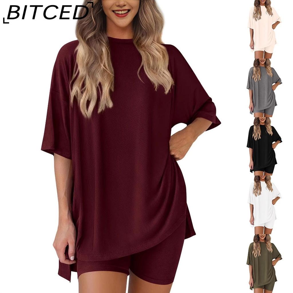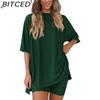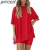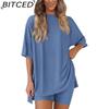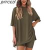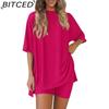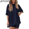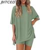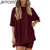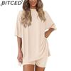 BITCED Women's Spring/Summer Loose-Fit Fashion Solid-Colour Casual Short-Sleeved Top and Shorts Two-Piece Set