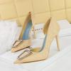 European American Style Banquet High Heels Thin Heels Shallow Mouth Pointed Toe Metal Buckle Side Hollow High Heels Single Shoes