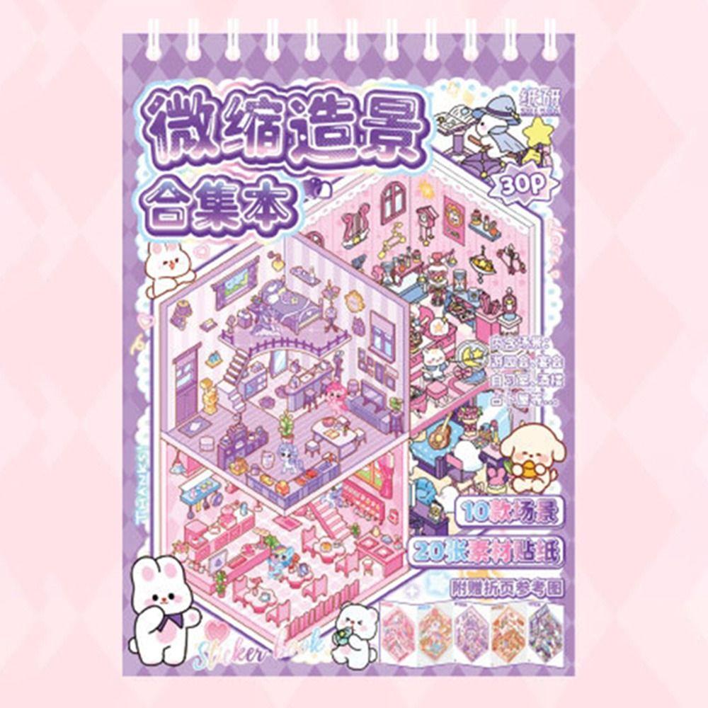 10 in 1 Landscape Sticker Book Capybara Cartoon Cabin Scene Decorative Decals Free Combination Tear-proof 3D Stickers Scene Set