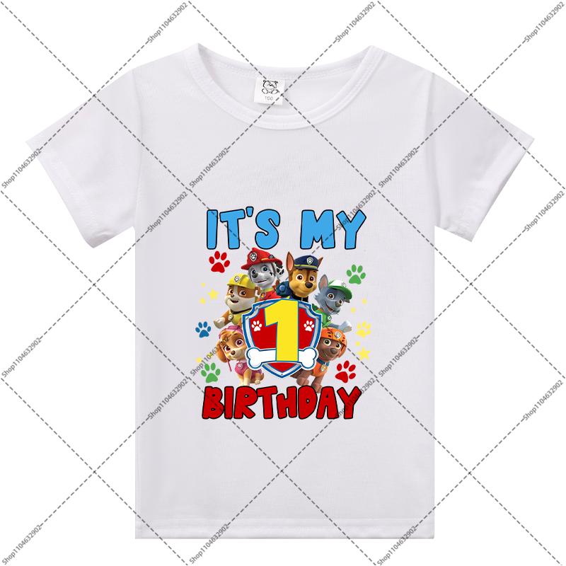 Paw Patrol Children Birthday T-shirts Cartoon Anime Numbers 1-9 Printed Tops Boys Girls Summer Clothes Kids Party T-shirt