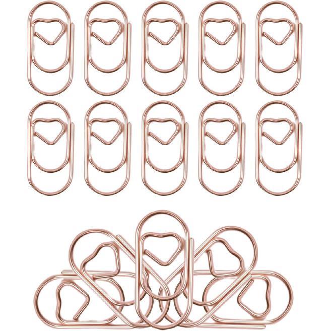 400PCS Rose Gold Paper Clips, Cute Decorative Mini Heart Shaped Paper Clips