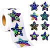 500 Pcs Holographic Star Stickers Roll Rainbow Design Label Stickers 1 Inch Star Decorative Labels Self Adhesive Cute Roll Decals Envelope Seals