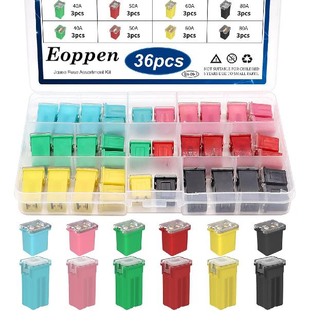 36Pcs Jcase Fuse Car Fuses Assortment Kit Automotive Tall/Standard and Low Profile Jcase Box Shaped Automotive Fuses for Trucks Cars and SUVs (20A,