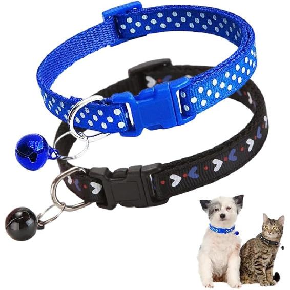 Pink Dog Collar with Bell for Small Dogs, 2-Pack Puppy Dog Collar with Bells for Girls Kitten Cat Collars Buckle for Tiny Little XXS XS XSmall Small