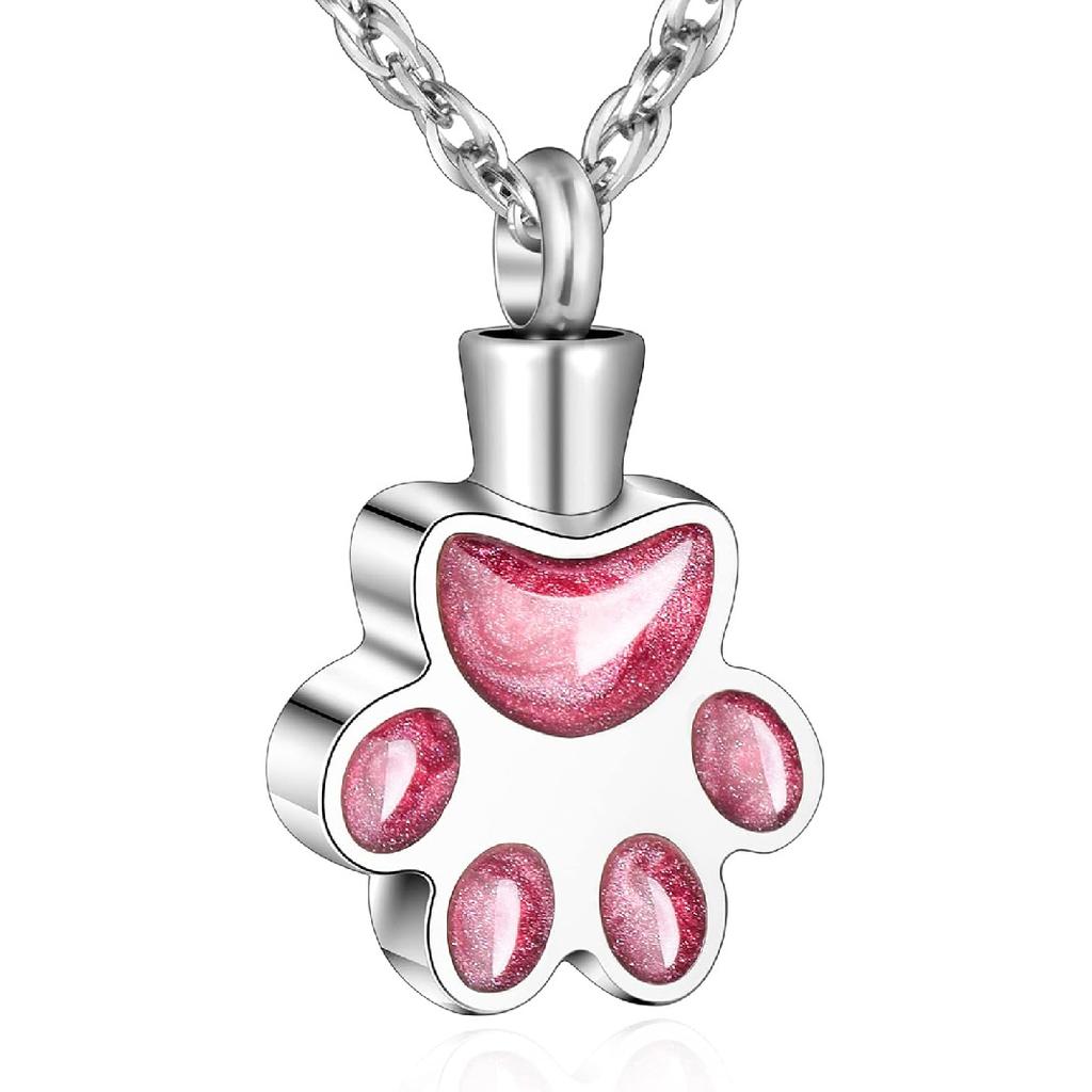 abooxiu Paw Print Urn Necklace for Ashes Cremation Necklace for Pet Ashes Stainless Steel Ash Necklace Memorial Ash Holder