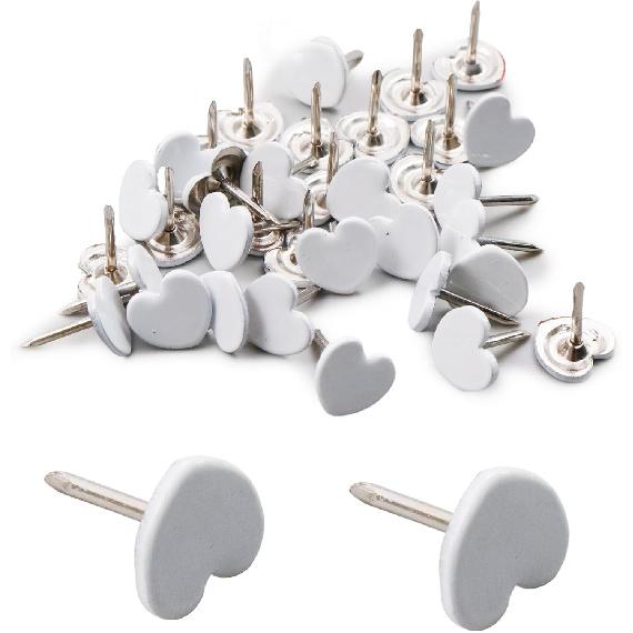 Antrader Thumb Tacks Heart-Shaped,Heart Shaped Thumbtacks Decorative Thumbtacks for Office School Personal Use (White),150Pcs