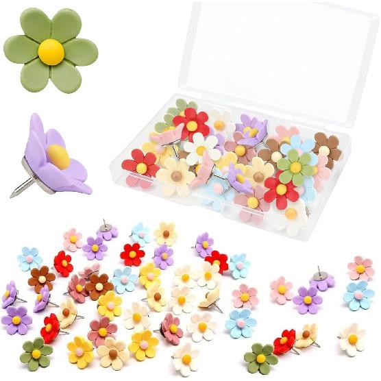 Flower Push P - 50 Pcs Cute Decorative Colorful Floral Thumb Tacks for Cork Board Wall Bulletin Board Travel Map Photo Home Office Supplies