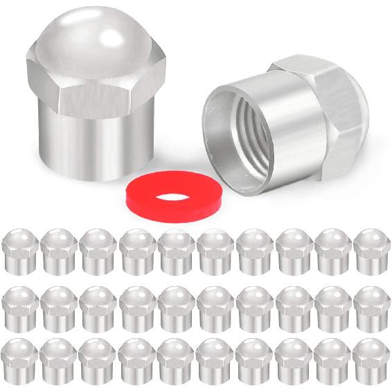 Chrome Tire Valve Stem Caps 30Pack, Non-Corrosive Plastic with Leak-Proof Air Rubber Seals, Dustproof and Waterproof, Universal Valve Stem Covers for