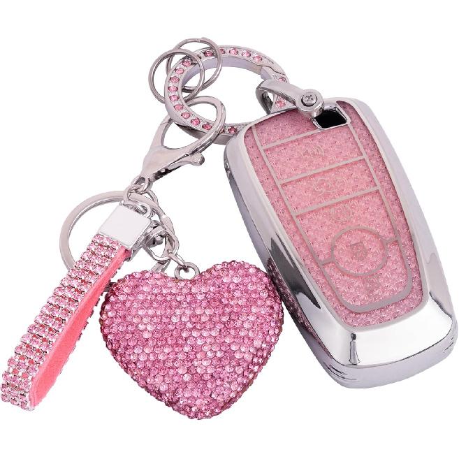 for Ford key fob cover with Diamond Bling Keychain, Car Accessories Shell for Explorer Fusion Escape Edge Expedition Bronco F150 F250 F350 F450 F550