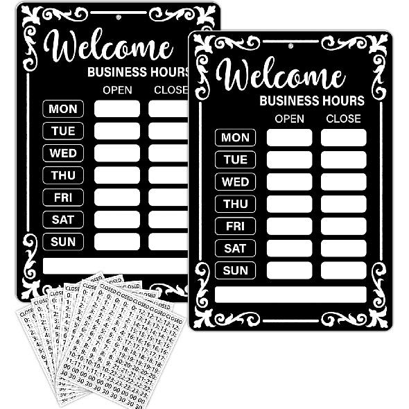 Lesnala 2Pcs Business Hours Sign Changeable Store Time Mark with Stickers for Coffee Bar Shop Restaurant Door Window Supplies 13.78 X 9.45 Inch PVC