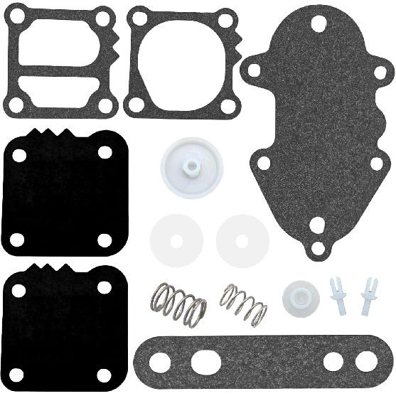 This kit contains essential components to fix the fuel pump diaphragm in outboard engines. Over time, diaphragms wear out, causing fuel delivery issues and reducing engine performance. With this kit, you can restore the fuel pump's efficiency, ensuring proper fuel supply for smooth and reliable engine operation