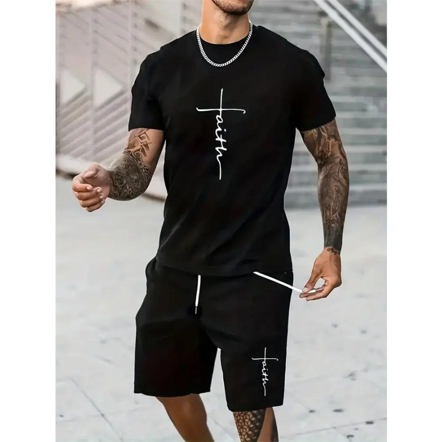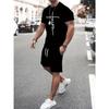 Pánská trička šortky sada Móda Pánské s křížovým potiskem Krátký rukáv Dva kusy Oversized Outdoor Beach Sports Pánský oblek větší velikosti