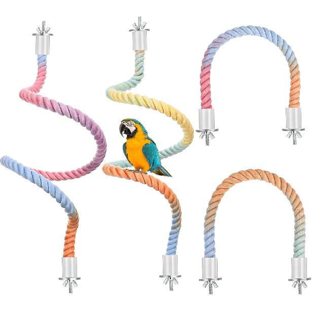 4 Packs Gradient Bendable Bird Rope Perches, Parrot Bird Perch Rope Stand for Cage Climbing Rope Toys Cotton Swing Climbing Rope Standing Bungee Toy