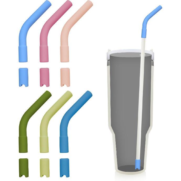12 Pcs Silicone Straw Tips with Bottom Sleeve Reble Silicone Tips for Metal Straws Food Grade Rubber Straw Tips Flex Elbow Straw Covers for Stanley