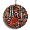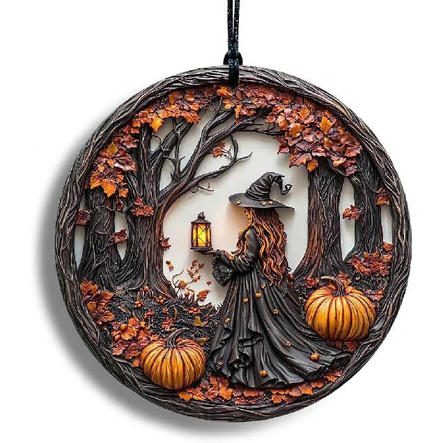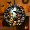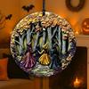 Halloween Stained Glass Window Ornament, Witch Scene with Pumpk, Acrylic Hanging Suncatcher, Round Wall Art Decor, Witchy Ornament for Home Friends