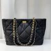 2023 Nová 22B Černozlatá Tote Bag Velká Kapacita Ovčí Kůže Kosočtvercový Řetízek Jednoramenná Podpažní Kožená Dámská Taška