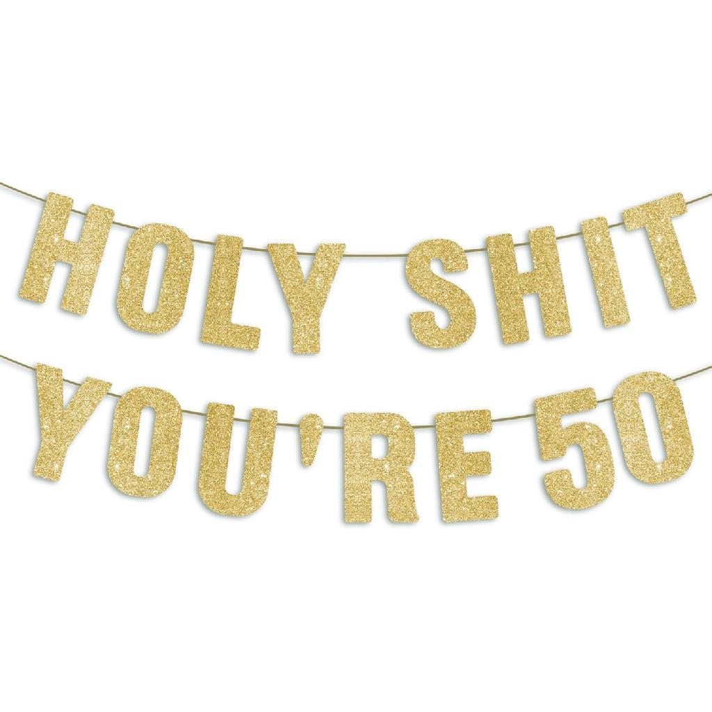 Pre-Strung 50th Party Gold Glitter Banner, Happy 50th Birthday Decorations for Men, Funny 50 Year Old Party Sign, 50th Birthday Decor for Women