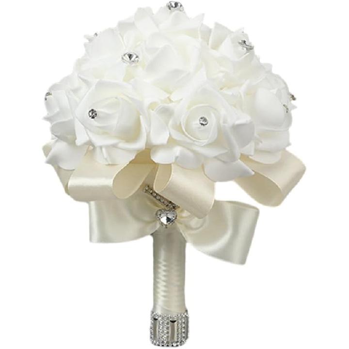 Hand Flower Toss Rose Wedding Pe Foam Simulation Bouquet Sparkling Rhinestone Jewelry Hand Flower Toss Bouquet Diamond