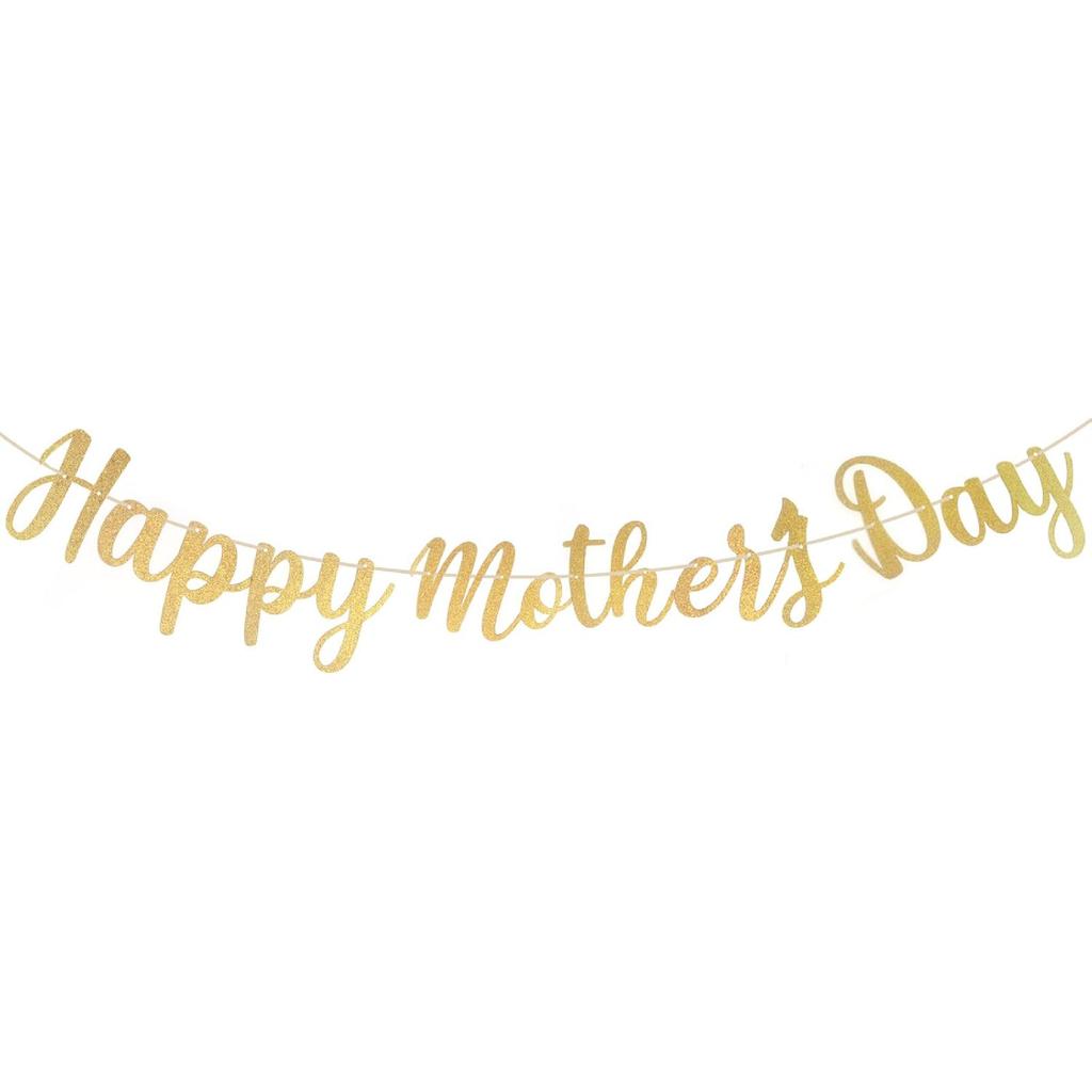 Happy Mother's Day Decorations Banner - NO DIY - Gold Glitter Mothers Day Party Supplies Decorations Backdrop Garland Love Decor for Mom Photo Props