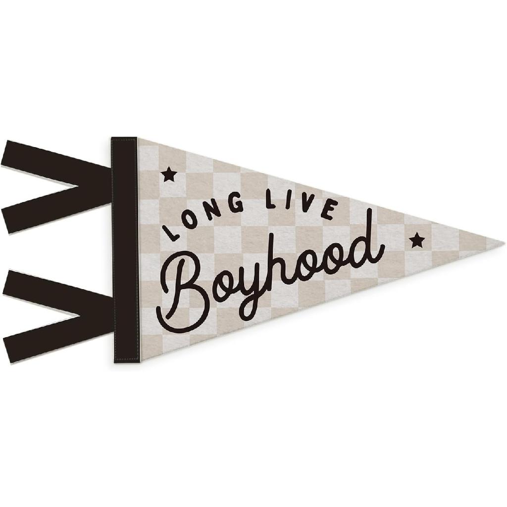 Boys Room Decor, Long Live Boyhood Wall Hanging Pennant Flag Banner, Preppy Neutral Checkerboard Wall Decorations for Nursery Toddler Boys Bedroom