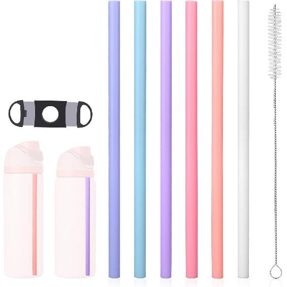 6pcs Replacement Straws for Owala FreeSip 24oz 32oz, 6 Colors Reble Plastic Straws with Cleaning Brush & Cutting Tool Water Bottle Tumbler