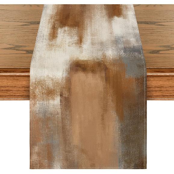Artoid Mode Brown Abstract Modern Art Table Runner, Seasonal Farmhouse Style Kitchen Dining Table Decoration for Home Party Decor 13x72 Inch