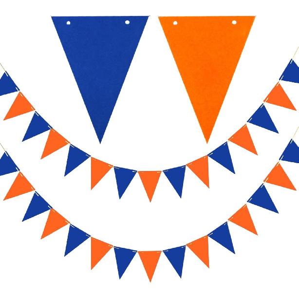GAKA 20 Feet Double Sided Blue and Orange Paper Triangle Flags Bunting Pennant Banner for Birthday Party, Wedding,Graduation Party Decoration