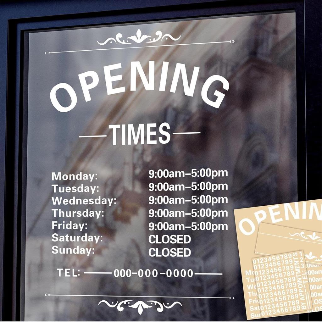Business Hours Window Decal Business Hours Sign for Glass Door Changeable Store Hours Signs Decals Open Closed Signs Decal for Business Coffee Shop