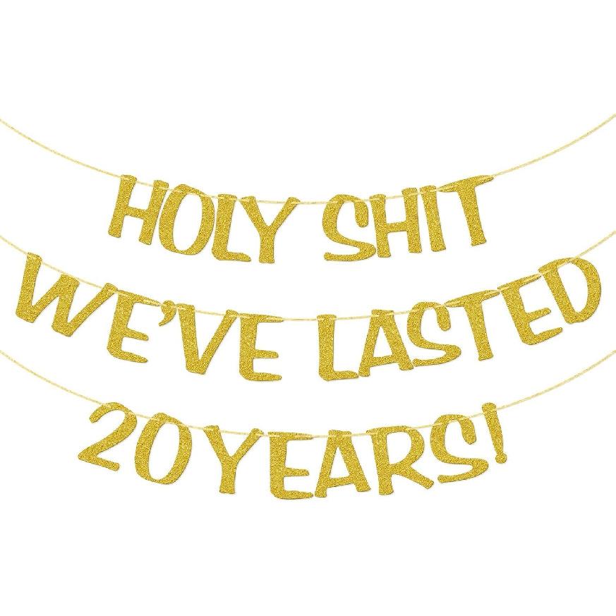 Holy We've Lasted 20 Years Banner, 20th Wedding Anniversary Party Decorations, Funny Decor for Him Her Husband Wife Parents, Pre-Strung, Gold Glitter