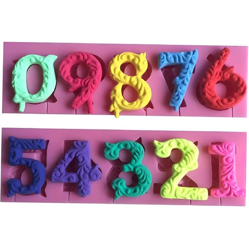 Silicone 3D Embossed Number Molds, 2 Pack 0-9, Hot Pink, Baking & Chocolate, Wedding & Birthday