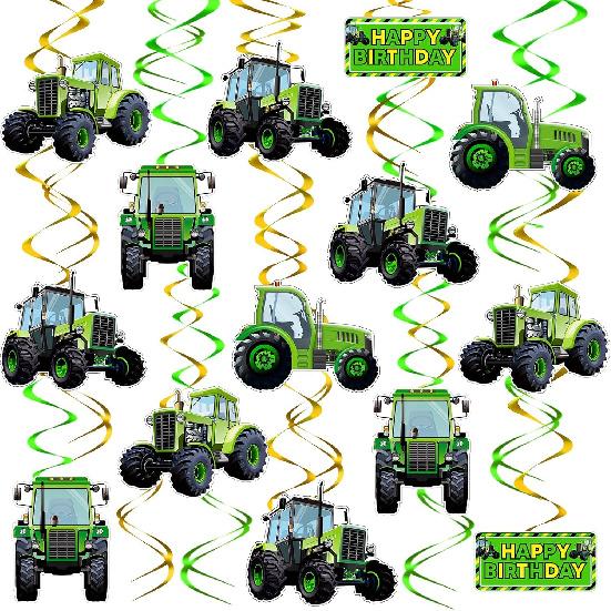 Marspark 30 Pieces Tractor Birthday Party Decorations Cars Theme Party Supplies Green Hanging Swirls Favors Decorations for Transportation Birthday 5