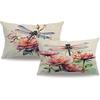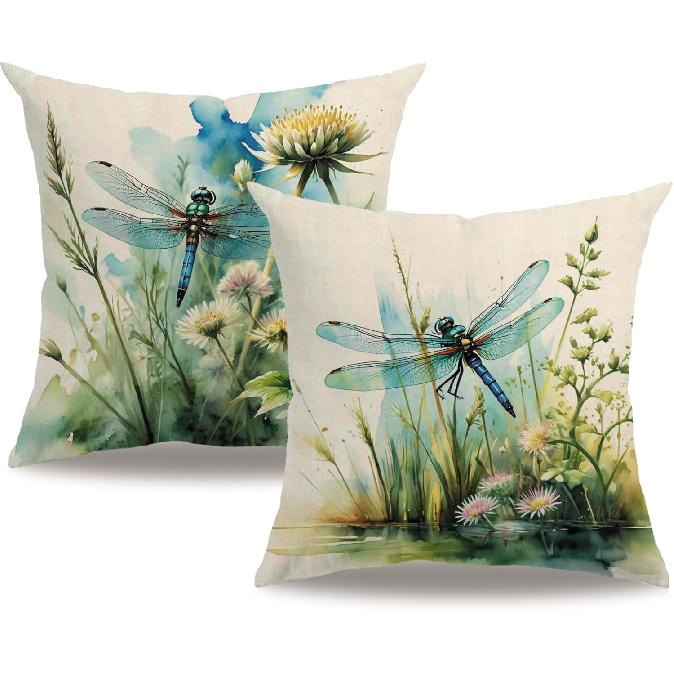 7COLORROOM Dragonfly Pillow Covers 18 X 18 Inch Wildflowers Color Dragonfly Cushion Covers Flower Holiday Rustic Farmhouse Decoration 2Pack for Sofa