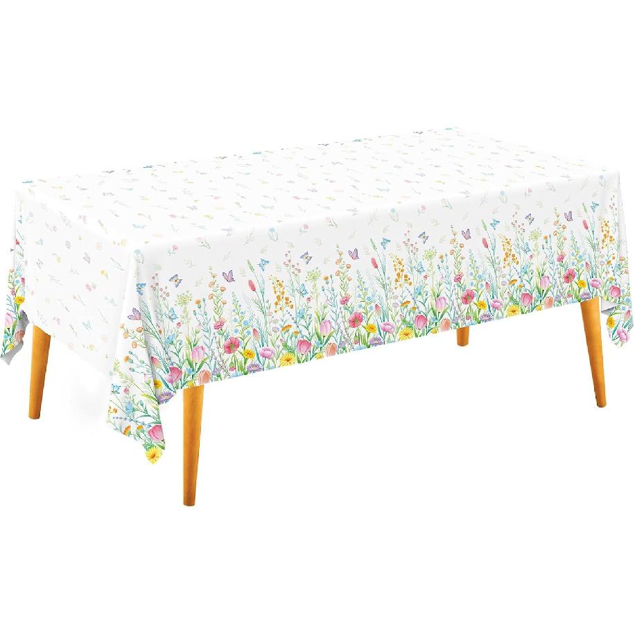 Vibrant Spring Floral Design: Our tablecloths boast a lush landscape of wildflowers, including daisies and lavender, punctuated by whimsical butterflies. Ideal for adding a burst of vitality to garden parties or as essential wildflower party decorations, these pieces infuse any setting with a cheerful spring vibe.