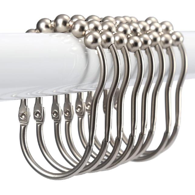 Shower Curtain Hooks, SUTINE 12Pcs Shower Curtain Rings, Stainless Steel Snap Closure Black Shower Curtain Hooks, Roller Glide Rustproof Shower Hooks