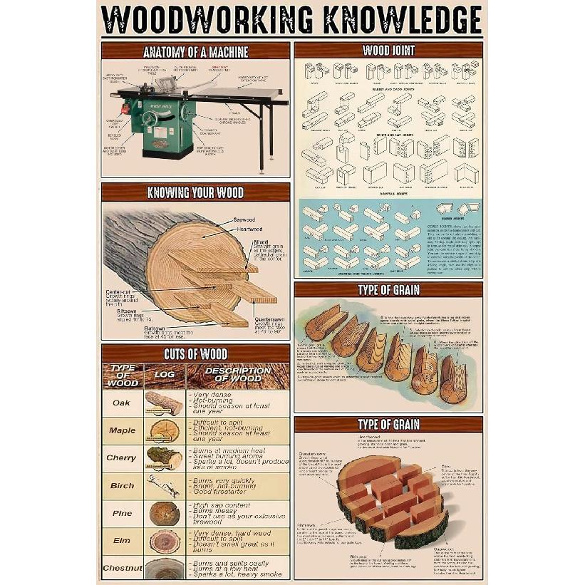 GOThDOThYE Woodworking Knowledge Metal Tin Sign Anatomy Of A Machine Chart Wallart Artwork Poster Farm School Office People Cave Bedroom Livingroom