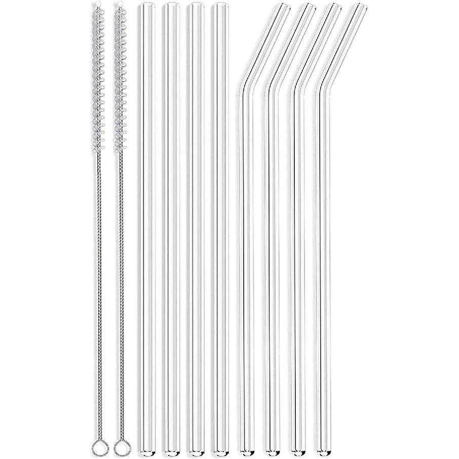 ALINK Skinny Clear Glass Straws, 10.5" x 7 mm Long Reble Drinking Straws for 30 oz 20 oz RTIC/YETI Stanley Tumblers, Mason Jars, Pack of 8 with 2