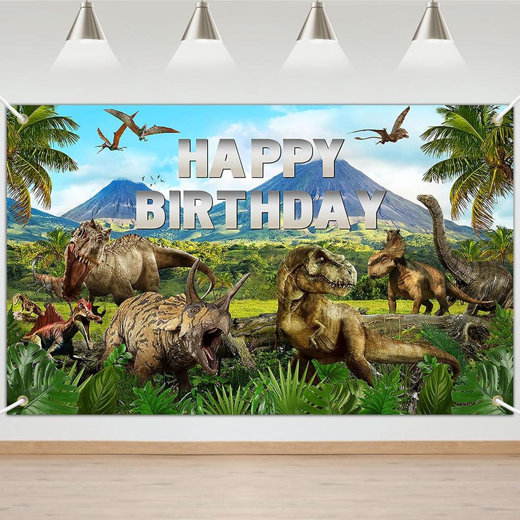 Avezano Dinosaur Happy Birthday Banner Dinosaur Happy Birthday Party Decorations Backdrop for Boy Jurassic Jungle Dino Theme Party Banner Photo Prop