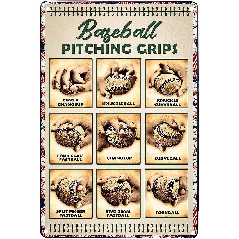 Baseball Decor Baseball Pitching Grips Metal Tin Sign Retro Art Print Vintage Decor For Boys Room Bedroom Gymnasium Living Room Home Wall Plaque 8x12