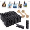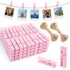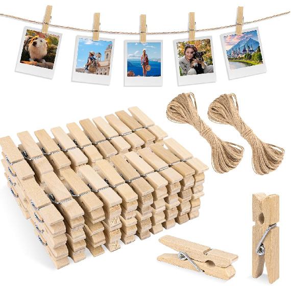 joycraft Mini Wooden Clothesp with String - 100Pcs Brown Craft Clips, 1.4 in Photo Holder Hanging Clips for DIY Craft, Wedding Party Decor, Classroom