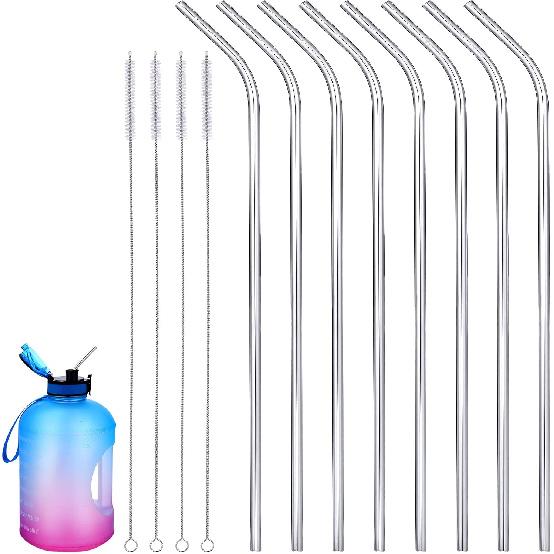 Geiserailie 8 Pieces 14 Inch Stainless Steel Straws Long Drinking Straws for 100 oz Tumblers, Extra with 4 Pieces Cleaning Brush(Silver)