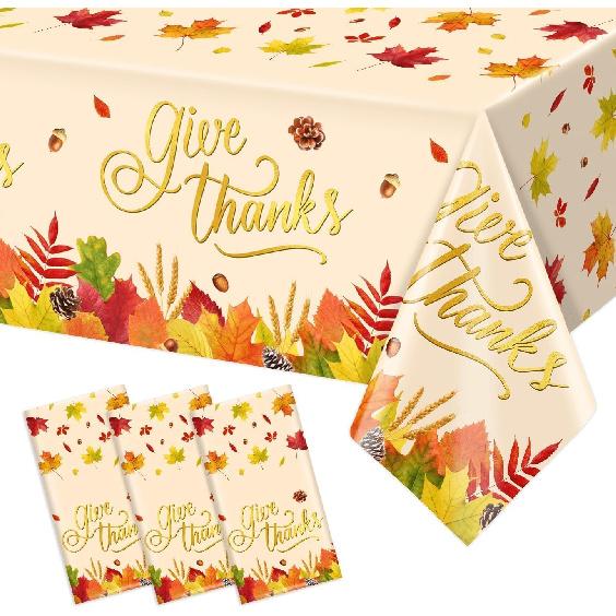 3Pcs Fall Thanksgiving Disposable Tablecloths Give Thanks Autumn Maple Leaves Waterproof Table Covers for Home Dinner Fall Harvest Thanksgiving Party
