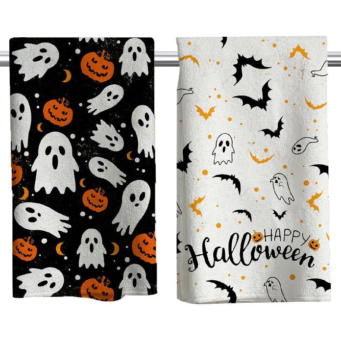 2Pcs Halloween Kitchen Towels Halloween Hand Towels, 18x26 Inch Drying Cloth Towel Halloween Scary Halloween Dish Towels for Kitchen Home, Living