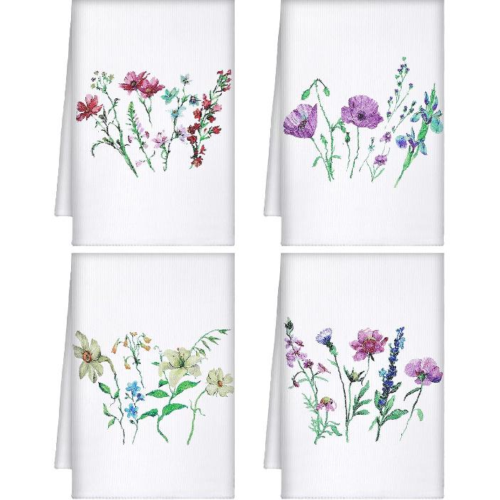 Bencailor 4 Pcs Floral Kitchen Towels Wildflower Print Flower Plants Embroidered Absorbent Dish Towels Housewarming Gift for Autumn Fall Bathroom