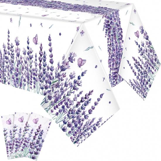 Peryiter 3 Pcs Spring Summer Floral Tablecloths Plastic Lavender Table Covers 54 x 108 Inch Watercolor Purple Floral Tablecloth for Spring Easter