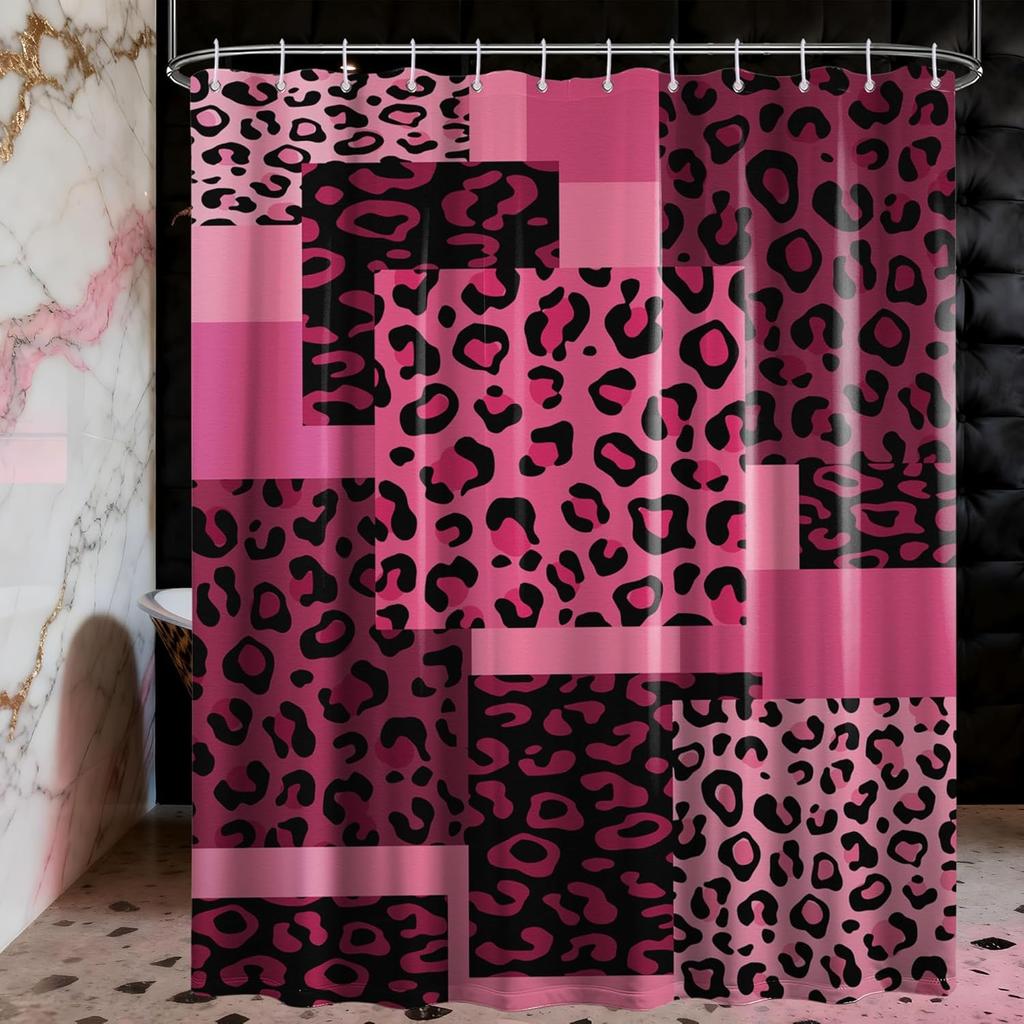 Dark Pink Leopard Shower Curtain Hot Pink Geometric Cheetah Print Shower Curta for Girls Bathroom Decor, Waterproof Fabric 70 x 72 inch with Hooks