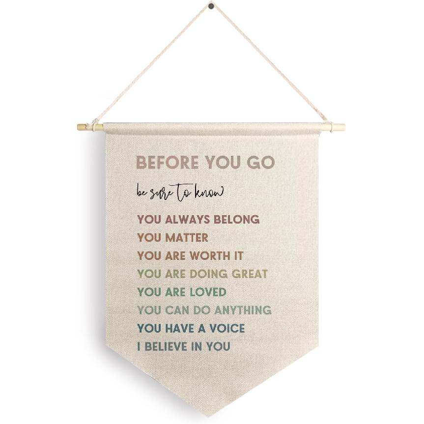 Qpenm Mental Health Sign Hanging Wall Canvas Banner, Boho Motivational Hanging Pennant Flag Prints, Positive Quote Home Wall Decor, Office